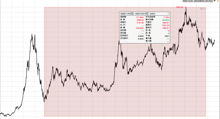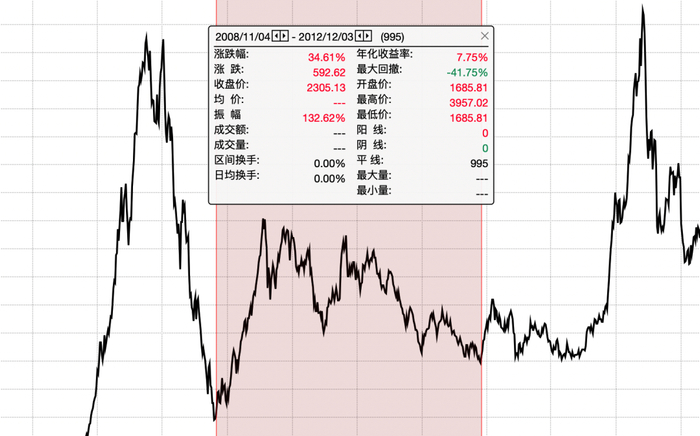 这是从 2008 年四万亿底部到 2012 年末,即使是两个底部,也是以7.75%的年化收益上升,以收益而言不算差。