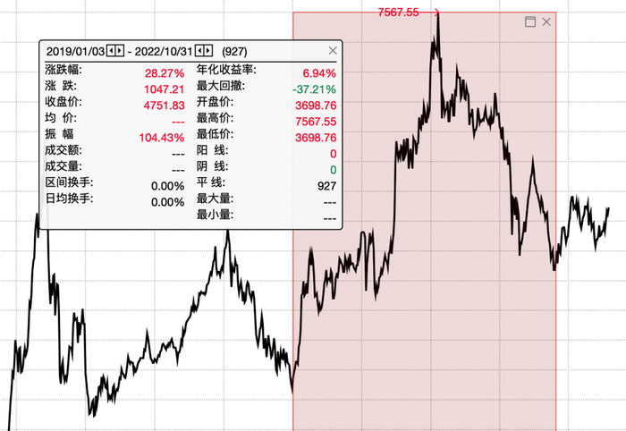 这次就是许多人比较熟悉,2019 年开始这波行情到去年 10 月底,年化收益 6.94%。