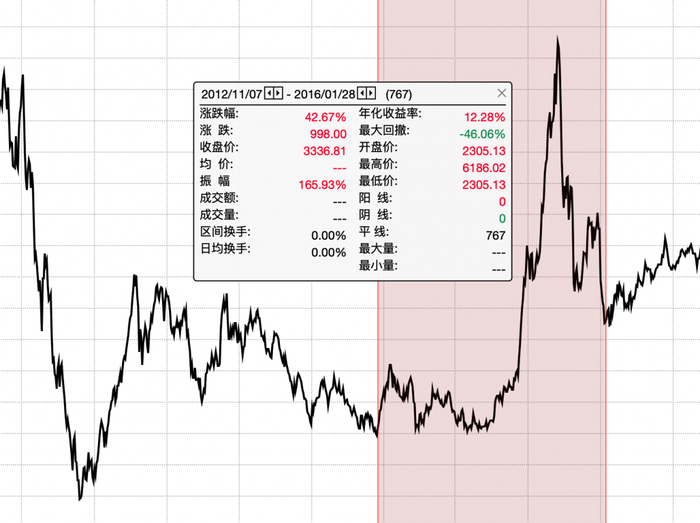 这是 2012 年末的底布到2015 年整治配资一直到 2016 年初砸出的底部,三年多时间的年化收益为 12.28%,更是宜人了。