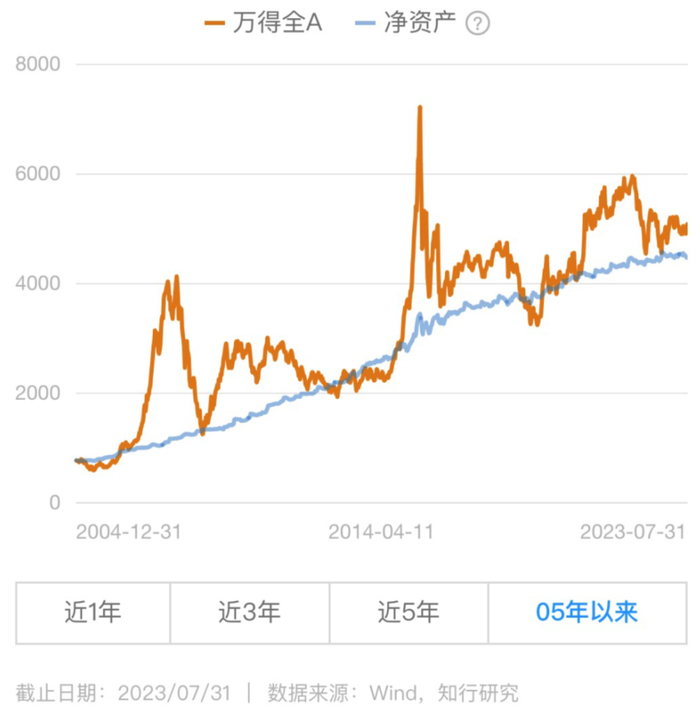 先来一张图表,沪深300全收益指数2005 年迄今的走势图,相比常见的沪深300指数,它考虑了分红再投资的复合收益,更能体现 A股蓝筹板块的真实长期收益。