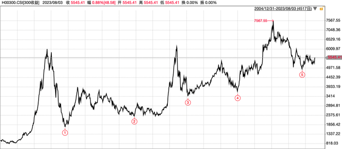 如果我们再算一下从❶到❺横跨四次牛熊的收益,年化收益依然有 7.79%。