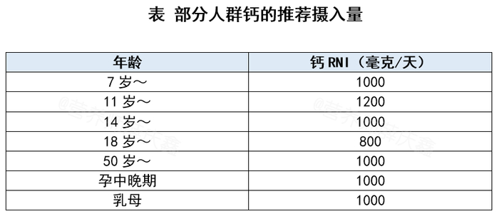 不同人群的钙需要量不同,一般人群每天推荐摄入量为 800mg/d。