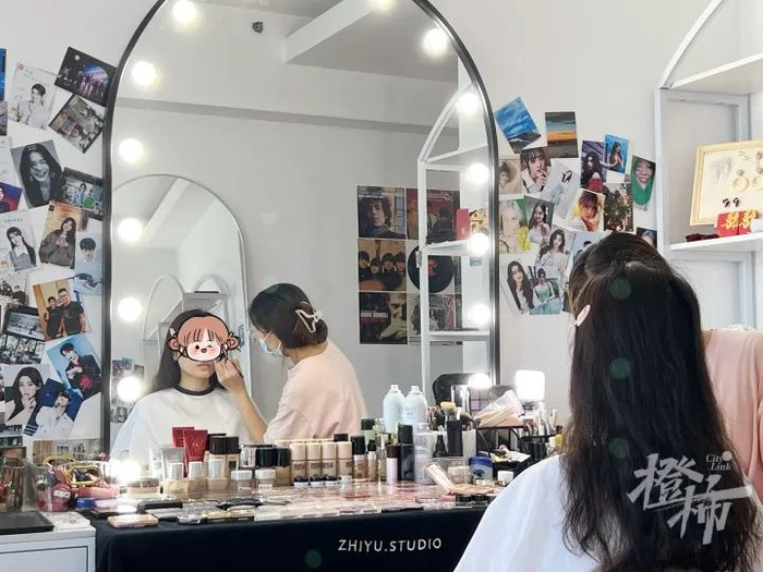 今年5月,芝宇开了一间“ZY艺人化妆室”。她是多年的商拍化妆师,主要给明星和模特化妆。这两年,她关注到素人化妆的需求越来越高,决定先开一间轻投入的小工作室。
