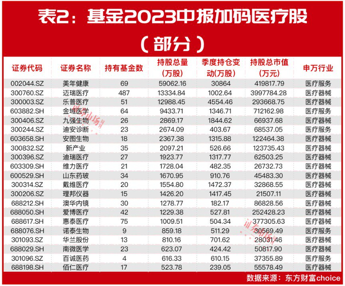 多基金也在加码医疗