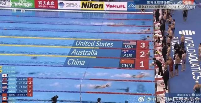 男女混合4x100米自由泳接力决赛中,