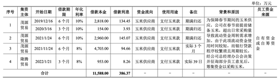 其在回复问询中表示,这是为保障春节期间的玉米供应,公司在春节前提前储备玉米,超出日常采购量导致流动资金周转需求增加。由于此项流动资金使用时间较短,而银行贷款程序较繁琐且周期较长,经公司总经理办公会决策并征询部分员工意见后,筹集资金以采购玉米。