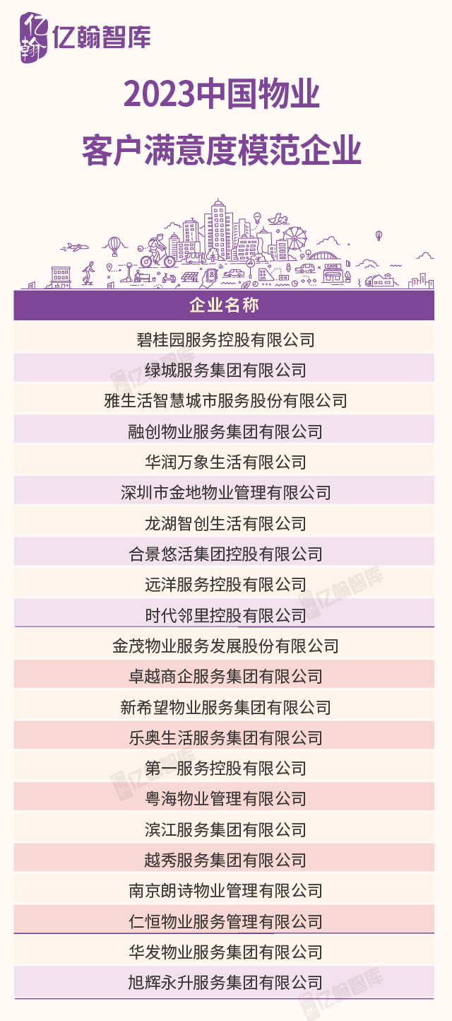 2023中国物业客户满意度模范企业