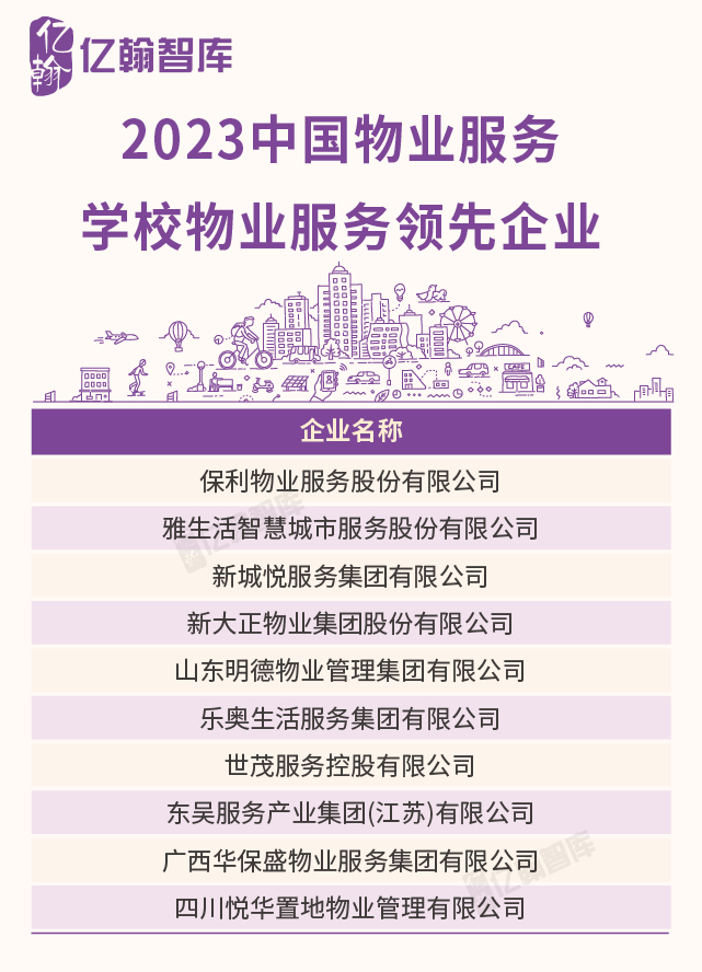 2023中国物业服务学校物业服务领先企业