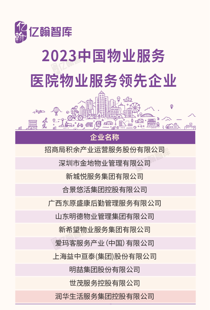2023中国物业服务医院物业服务领先企业