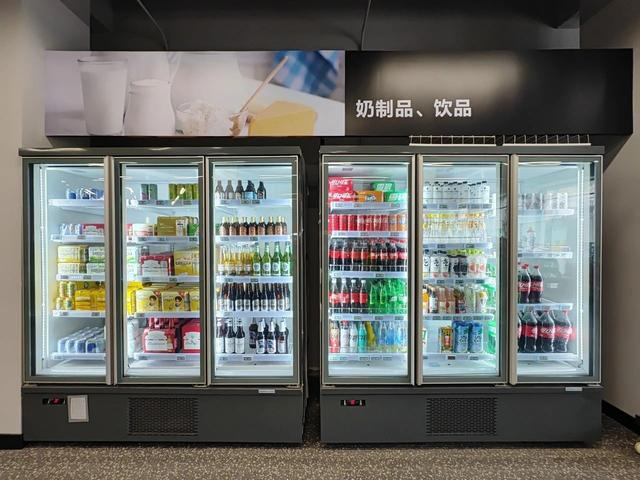旁边,一排透明冰柜里摆满了各类饮料、啤酒,是夏天里的“幸福所在”;还有琳琅满目的速冻食品,下班后不想吃外卖,在这里,就可以用最快的速度做出一桌可口的饭菜。