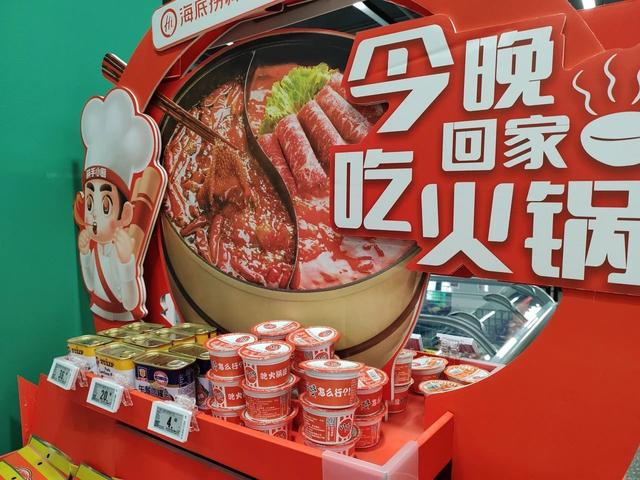 让人惊喜的是,这里还特别设置了火锅食材专区,涮肉、丸子、午餐肉罐头等“高频”菜品一样不差,火锅底料、火锅蘸料也放在了显眼位置,让火锅爱好者们轻松备齐餐桌所需。
