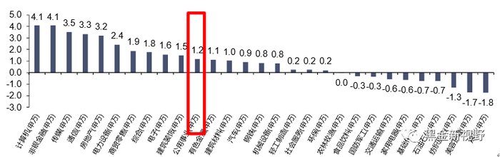 图 1:各行业板块一周表现(%)