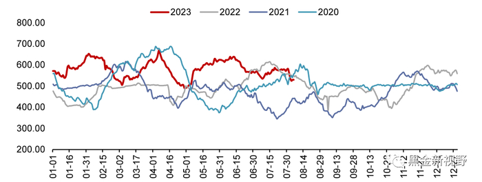 沿海8省电厂库存、日耗及可用天数:截至8月3日,沿海8省煤炭库存3631.8万吨,较上周下降44.8万吨,周环比下降1.22%;沿海8省电厂日耗为235.2万吨,较上周增加6.2万吨/日,周环比上升2.71%;可用天数为15.4天,较上周下降0.7天。