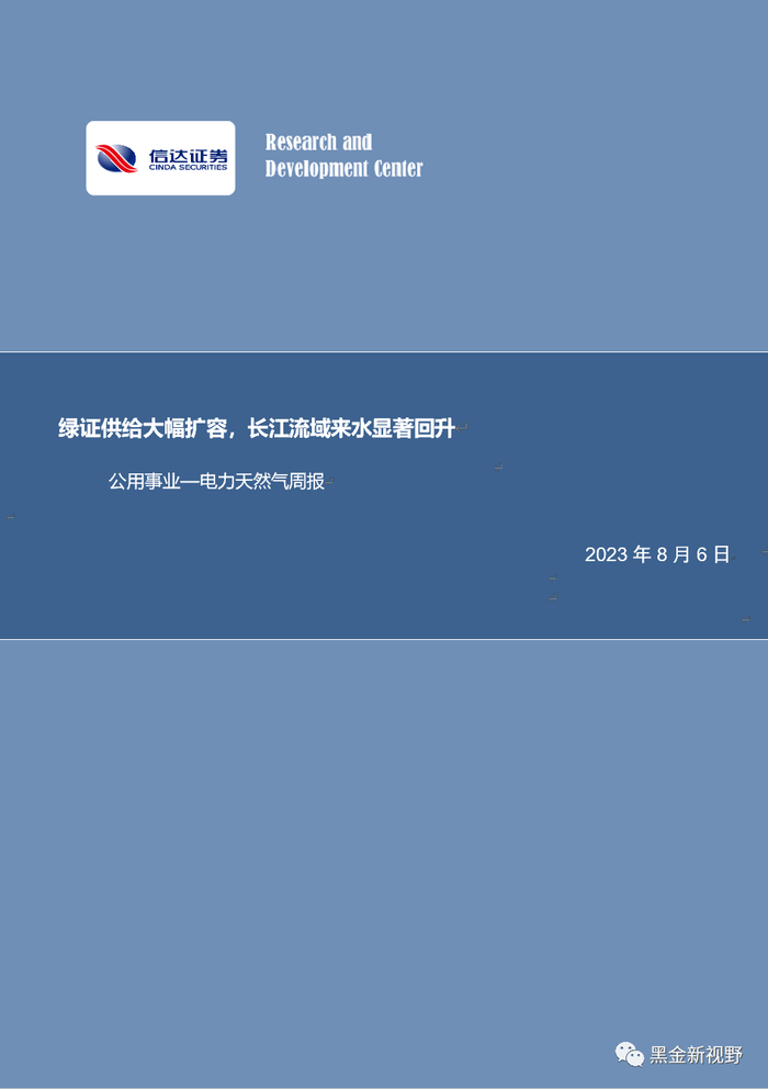 【信达能源】电力天然气周报:绿证供给大幅扩容,长江流域来水显著回升