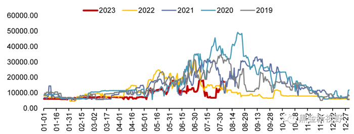 3. 水电来水情况:截至8月4日,三峡出库流量17100立方米/秒,同比上升36.80%,周环比上升40.16%。