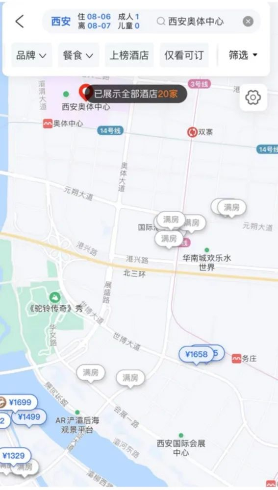 回到这场“TFBOYS十年之约演唱会”,携程界面显示,早在该场演唱会开票前,场馆方圆5公里的酒店房间就已经全部售罄,此外,10公里为数不多还有房间的酒店房价也均飙升三五倍,达千元以上。彼时,曾有媒体致电场馆附近酒店,酒店工作人员称,房间早在一周前就已经售罄,那时候网上已经有了场馆的报批通过信息。