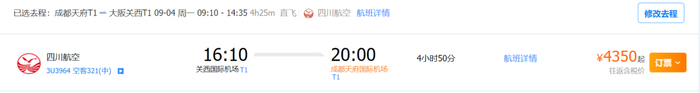 今年国庆假期和中秋连休,总共有8天长假。放假时间从9月29日开始至10月6日。据查询,成都往返大阪的经济舱机票价格,以9月29日出发10月4日回程为例,若不考虑转机,价格则突破13000元。