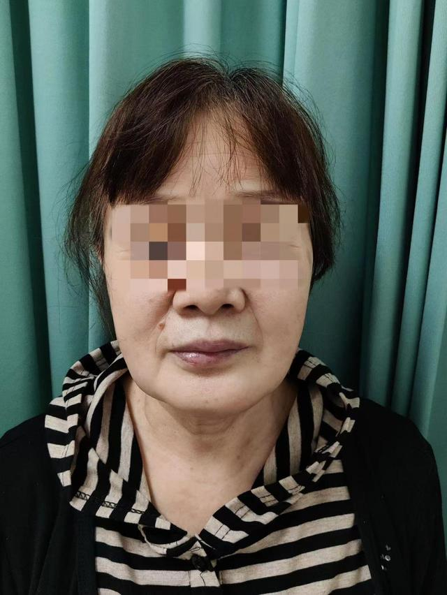 术后,病理活检证实了夏德林的诊断,胡女士为双侧下颌骨恶性肿瘤。但经过医护团队的精心治疗与管理,胡女士恢复良好。从她的脸正面照来看,左右两侧颌骨比较对称,几乎看不出她做了下颌骨再造术,颈部手术疤痕与颈纹完美融合,看似自然颈纹一般。此外,她的张口闭口功能也恢复良好。
