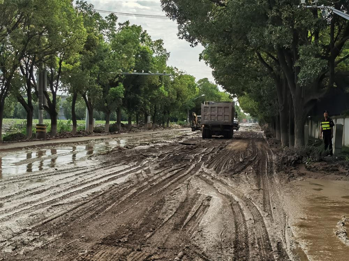 这条玉阳路堪比“沼泽地”!松江南站周边,道路被几百辆土方车压惨了