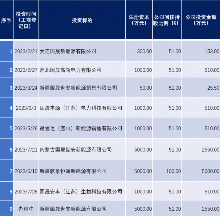 仅从投资标的的公司名称上也可以看得出来,这些投资多与国晟能源有关。