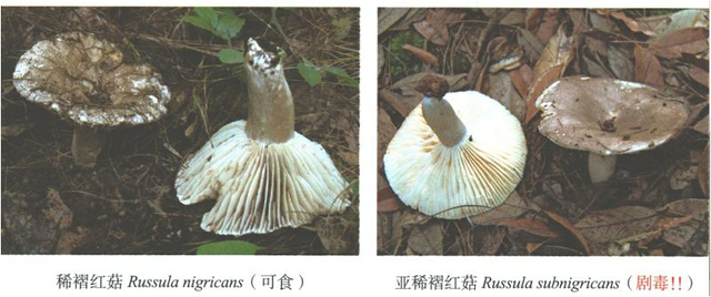 历年来,亚稀褶红菇已造成多人中毒、死亡事件,导致中毒事件频发的主要原因是该菌与老百姓经常采食的红菇属中的其他种类,如稀褶红菇、密褶红菇外观极为相似,很难从外观形态上将它们区分开来,往往需要专业人员结合显微镜及分子生物学鉴定手段才能进行准确鉴别。