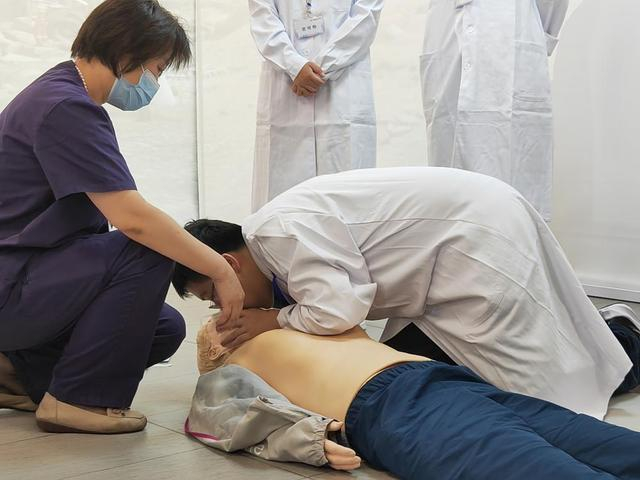 而在心肺急救模拟体验环节,同学们有的进行心肺复苏按压,有的对模拟人进行人工呼吸,还有的营员们齐心协力将伤员抬上担架。模拟实训中心主任史霆说,“每年医学体验营几乎都会有心肺复苏环节,希望更多的人学会心肺复苏术,同时也希望更多的同学了解、理解医学并爱上这份崇高的职业。”