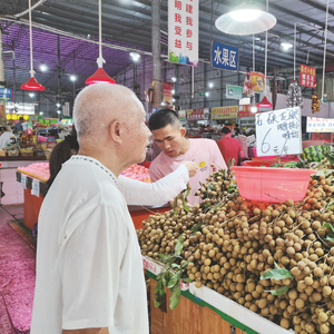 记者在市场走访发现,卖得最多最好的龙眼品种是石硖,其价格根据品相不同在6~10元/斤的范围内波动,此外也有少量储良龙眼在售,售价为12元/斤。一名摊主告诉记者,今年是龙眼丰收年,十多天前开始上市,价格跟往年比没有太大变化,甚至还有可能继续往下调整。