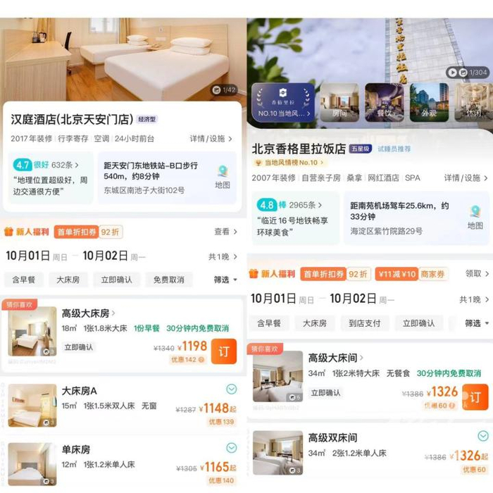 昨天,“月薪2万住不起经济型酒店”登上了微博热搜,起因是有人发现,在10月1日当天,汉庭酒店(北京天安门广场店)的价格高达855元/晚。