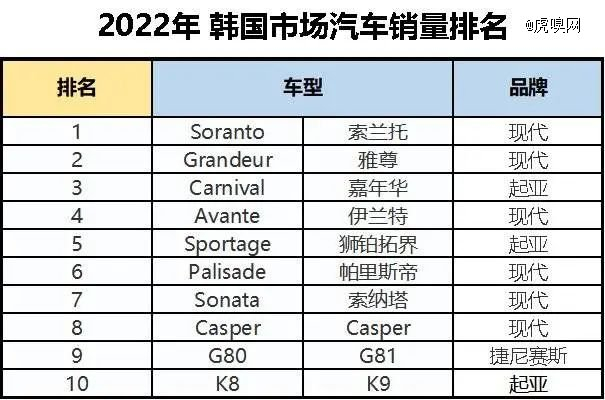 2022年,韩国国内汽车销量前20名的车型,全部来自韩国本土厂商。包括现代和起亚在内的韩国五大汽车制造商,在本土占据市场份额约80%。