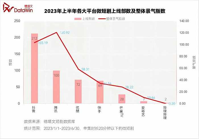 德塔文报告显示,今年上半年,国内共上新微短剧481部,爱优腾占了179部。这179部里,超过半数都来自腾讯视频,而爱奇艺的短剧仅上新7部。短视频那边,抖快共上线了280部短剧。抖音一家的数量就超过了主流长视频之和。