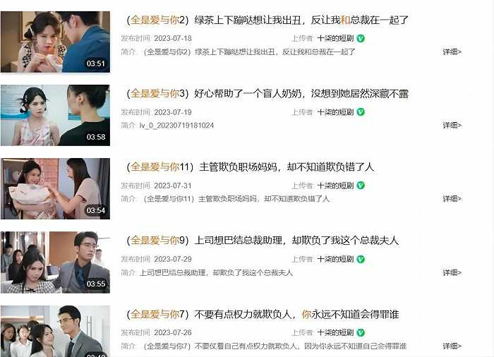 网文套路在短剧里被全面应用:暴打小三、屌丝逆袭、霸道总裁等。在短剧里,这些元素几乎每集都会出现,快速吸引人的眼球。