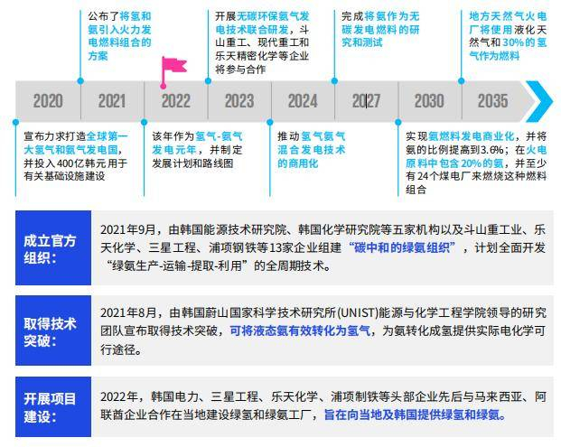 在韩国产业通商资源部2021年12月7日主持召开的第二次氢气和氨气发电推进会议上,韩政府宣布将2022年作为氢气氨气发电元年,并制定发展计划和路线图,力求打造全球第一大氢气和氨气发电国。会议宣布,政府明年共将投入400亿韩元用于有关设备基础设施建设,并于2023年前制定“氢气和氨气发电指南”,推广有关技术在LNG发电站使用。