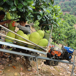 “再装点,放整齐,这样上山的时候才能保持平衡。”基地里,漫山遍野的菠萝蜜装点了几座山头,8条单轨运输轨道横贯山间,工人老李正在忙着将采摘好的果实装到轨道车上,输送到山顶的集中装卸点,统一打包外销。2021年,基地投入40余万元安装的5000米单轨运输轨道,为基地的管理和丰收时节果实的输送带来了极大的便利。