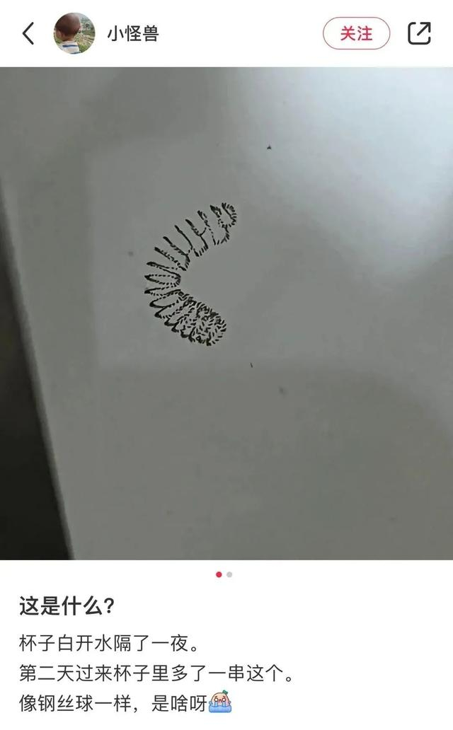 水下杯壁上,出现一种透明“小虫”:长一两厘米,通体透明,质地好似果冻。用放大镜细看,会发现它透明的体内,悬浮着很多小颗粒,并呈螺旋状盘绕。不过这“小虫”无头无尾,而且始终一动不动,通常放上几天会消失无踪。