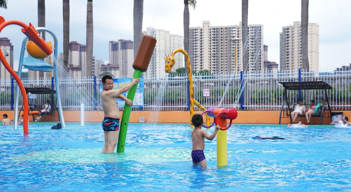 7月15日,河源文化广场水上乐园新开业,除了彩虹滑梯、按摩池、造浪池等游玩项目外,还设置了一个国标游泳池。开业以来,河源文化广场水上乐园在抖音、美团等平台推出59.9元优惠门票团购,吸引众多市民前来游玩,博得“开门彩”。“客流整体挺旺的。现在日均客流量约1000人次,周末更多,将近2000人次。”河源源方旅游公司相关负责人介绍,暑假期间,很多家长带着孩子来这里游玩,大多数是本地市民。
