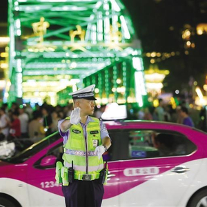 7月以来,中山桥景区迎来旅游旺季,游客接待量持续“升温”。有的外地游客在出游过程中出现身体不适晕倒、孩子走失、物品证件丢失等情况,兰州市公安局城关分局第三治安派出所民辅警们紧急化身“藏蓝医护工”“临时家长”“兼职导游”,开道送医、悉心照料、安全引导……温暖守护景区游客,提供全方位服务保障,用坚守“汗”卫平安。8月7日晚8时许,记者来到中山桥看到,随着夜幕降临,来自省内外的游客汇聚于此,东西两侧的过街天桥已挤满了行人。“请大家不要拥挤,扶好两侧的栏杆,有序通过……”“请在天桥上拍照的游客,拍完抓紧时间离开,以免引起拥堵……”兰州市公安局城关分局第三治安派出所民辅警们守护在天桥两侧,给游客送去一句句温馨提示。据了解,每晚8时以后,东西两侧天桥实行单向通行,用东进西出的策略应对激增的人流,该所民辅警会对天桥桥面上的游客进行及时的劝导和疏散。同时增加警力对黄河边游玩,涉水的外地游客进行劝导并协助有序离开。