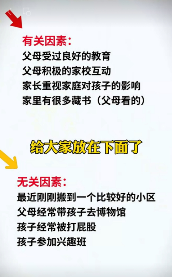“父母受过良好的教育”,“积极的家校互动”,“家里有很多父母的藏书”这些,才是属于有关因素。
