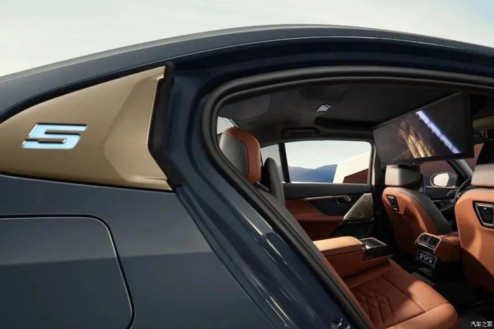 此外,新车还针对后排进行了升级,值得一提的是,新车将会配备后排悬浮式巨幕,这款来自宝马7系的豪华配置将会成为国产长轴距版5系客户的专属选项(海外版没有),该屏幕尺寸达到31英寸,分辨率为8K,并支持实时互联。不仅如此,新车还将配备Bowers & Wilkins环绕式音响系统、四区自动独立空调(后排带独立控制面板)等高阶配置,最后,前排座椅靠背上还将配备汉字“五”专属徽标,进一步彰显其作为国产版车型的特殊身份。