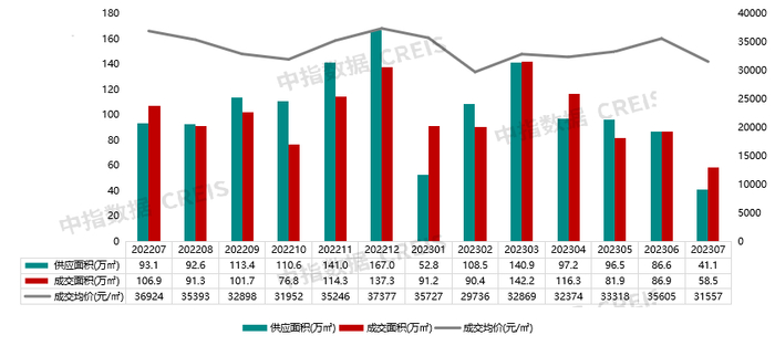 图:2022年7月-2023年7月杭州商品住宅供销量价走势