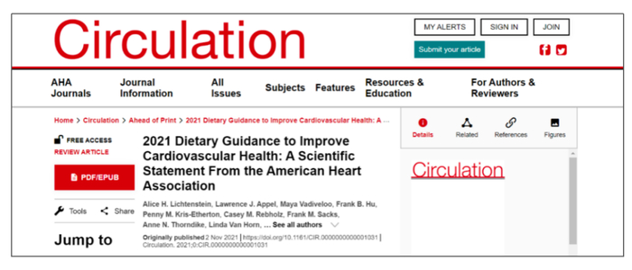 ① Popular Dietary Patterns: Alignment With American Heart Association 2021 Dietary Guidance: A Scientific Statement From the American Heart Association. Circulation. 27 Apr 2023.