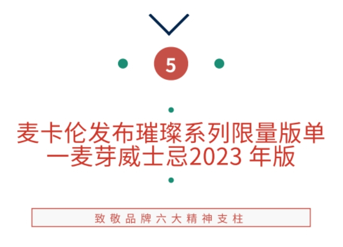 麦卡伦推出璀璨系列限量版单一麦芽威士忌2023 ,分别为麦卡伦璀璨、麦卡伦璀璨·黑以及麦卡伦璀璨·金。其中,璀璨·金是麦卡伦璀璨系列的最新作品,于2022年首次亮相。