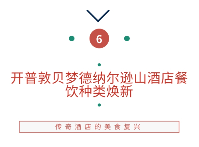 2023年7月,开普敦贝梦德纳尔逊山酒店宣布丰富餐饮种类,推出全新佳肴。由酒店的新任行政总厨George Jardine设计的菜单追求均衡搭配、与时俱进,将南非风味融入菜肴当中。Jardine的主厨餐桌 (Chef's Table) 美食项目也于今年六月正式开始同时,Liam Tomlin和David Schneider两位主厨近期在纳尔逊山酒店推出新项目,将以前的Grill Room改造为泛亚餐厅the Red Room,带领宾客开启一场东方美食之旅。