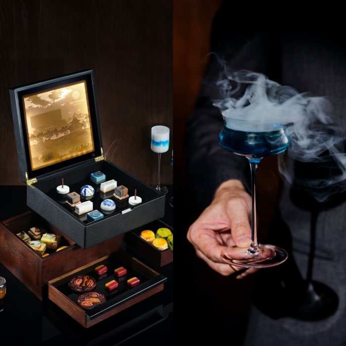 今夏,北京璞瑄酒店推出艺术下午茶,以酒店建筑与艺术为灵感,打造创意美点。璞瑄酒店特别定制了艺术下午茶珠宝盒子瑄碧珠匣,第一层陈列四款甜品:王府井大街一号 · 巧克力焦糖香蕉布朗尼细腻丝滑的巧克力与香蕉的甜香芬芳交融。金砖 · 浆果咸饼干芝士造型设计源于酒店内地面所铺的“御窑金砖”。写意富春山居图 · 橙子慕斯巧克力米纸勾勒写意版《富春山居图》,橙子果茸与橙皮碎融合了佛手柑的清香,回味悠长。此外有致敬嘉德艺术中心同期展览《伊夫·克莱因-超越时空》纯手工绘制的主题艺术巧克力,底层的坚果四拼巧克力和特色太妃糖,制造惊喜回味。