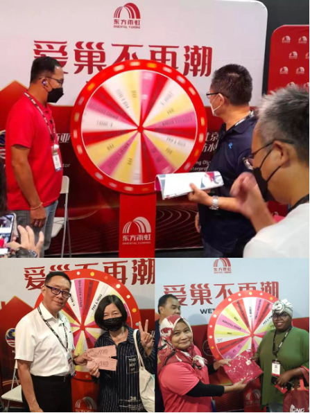 在本次展出上,马来西亚东方雨虹以“爱巢不再潮”为主题,以“多元产品服务助力美好人居”为出发点,重点展示聚氨酯防水涂料、聚合物水泥基防水涂料、高耐候热塑性TPO防水卷材、Imerz999高耐防水涂料、HCA速克有机硅防水剂等建筑建材产品,马来雨虹总经理单东宁联合多家代理商对本次参展产品进行重点讲解,参会者纷纷为东方雨虹的系统服务产品点赞。此外,现场的转盘有奖活动吸引了众多观众驻足参与。