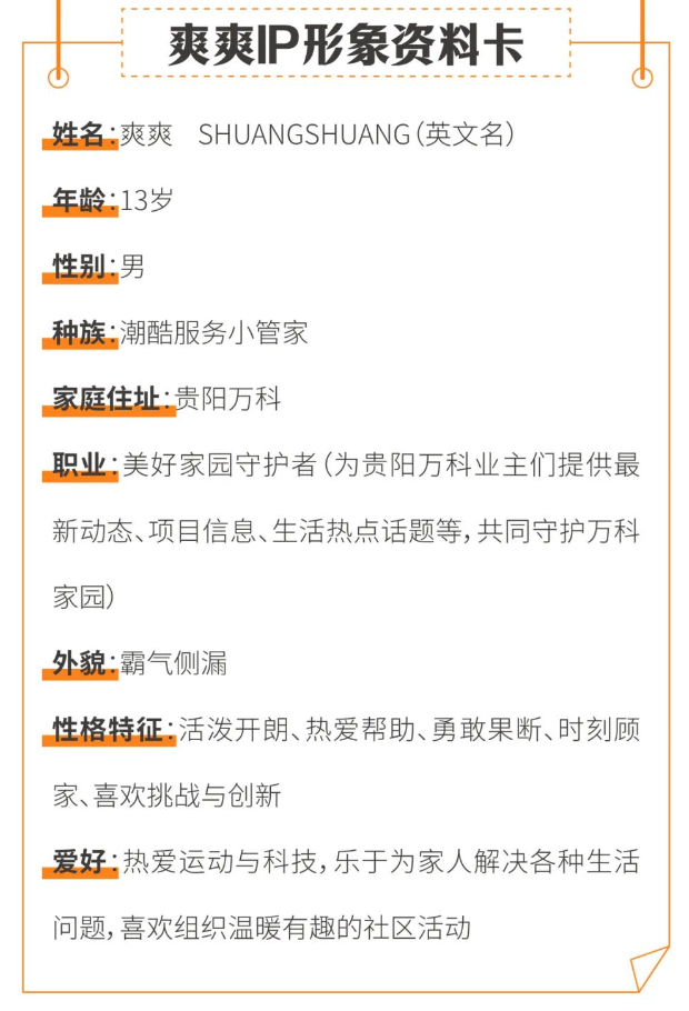 设计理念。整体采用流畅硬朗线条,重新调整“爽爽”的身材比例,打造紧随潮流的“霸气酷炫”造型,椭圆状脑袋一改正圆形的呆板,更为灵动,双手插在裤兜贴合贵阳年轻群体的穿搭审美,也寓意着贵阳万科客户服务一直致力于贴近业主生活。