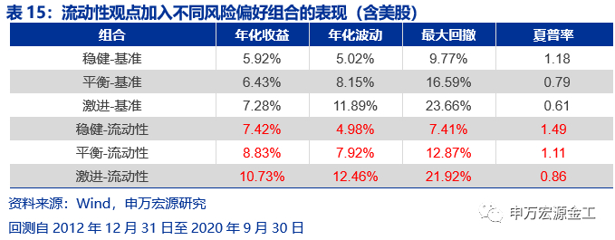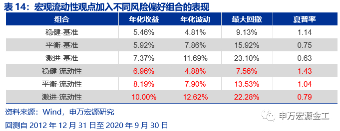 可以看到,加入流动性观点后,组合收益、夏普率同样有明显的提升。