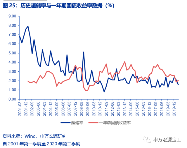 降准时,央行资产负债表项目并不发生改变,但法定存款准备金减少、超额准备金增多,银行体系中可用的资金增加,流动性宽松;若货币投放增加而政府存款也在增加时,银行体系的超额存款准备金未必增加,流动性没有明显的变化。可以看到,公开市场操作等货币政策工具仅代表流动性投放的一个角度,银行体系资金的宽松程度可由超额存款准备金更全面地反映。根据央行的表述,超额存款准备金是金融机构流动性最强的资产,其数额和比率一定程度上可以反映金融机构流动性状况,也是货币政策是否有效传导的重要标志之一。超额存款准备金与各项存款余额之比称为超储率,每季度公布: