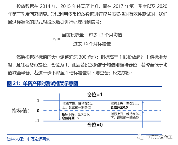 这一测试方法能有效避免因信号波动而带来的频繁调仓,对信号的检验能力更强。我们将货币净投放指标用于沪深300择时测试后发现效果较为明显: