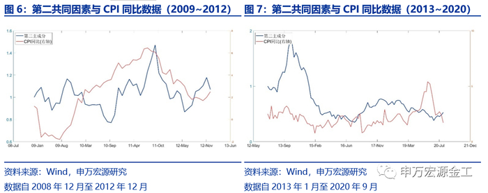 类似的,我们再观察第二主成分的情况。我们对月频收益率提取主成分,并将转换后的第二主成分收益率的波动调整至与沪深300指数一致,并与CPI同比数据进行比较: