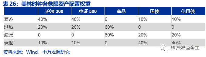 根据美林时钟规律和资产表现,我们设置如下权重作为美林时钟各象限的配置权重,以此得到图3的配置结果: